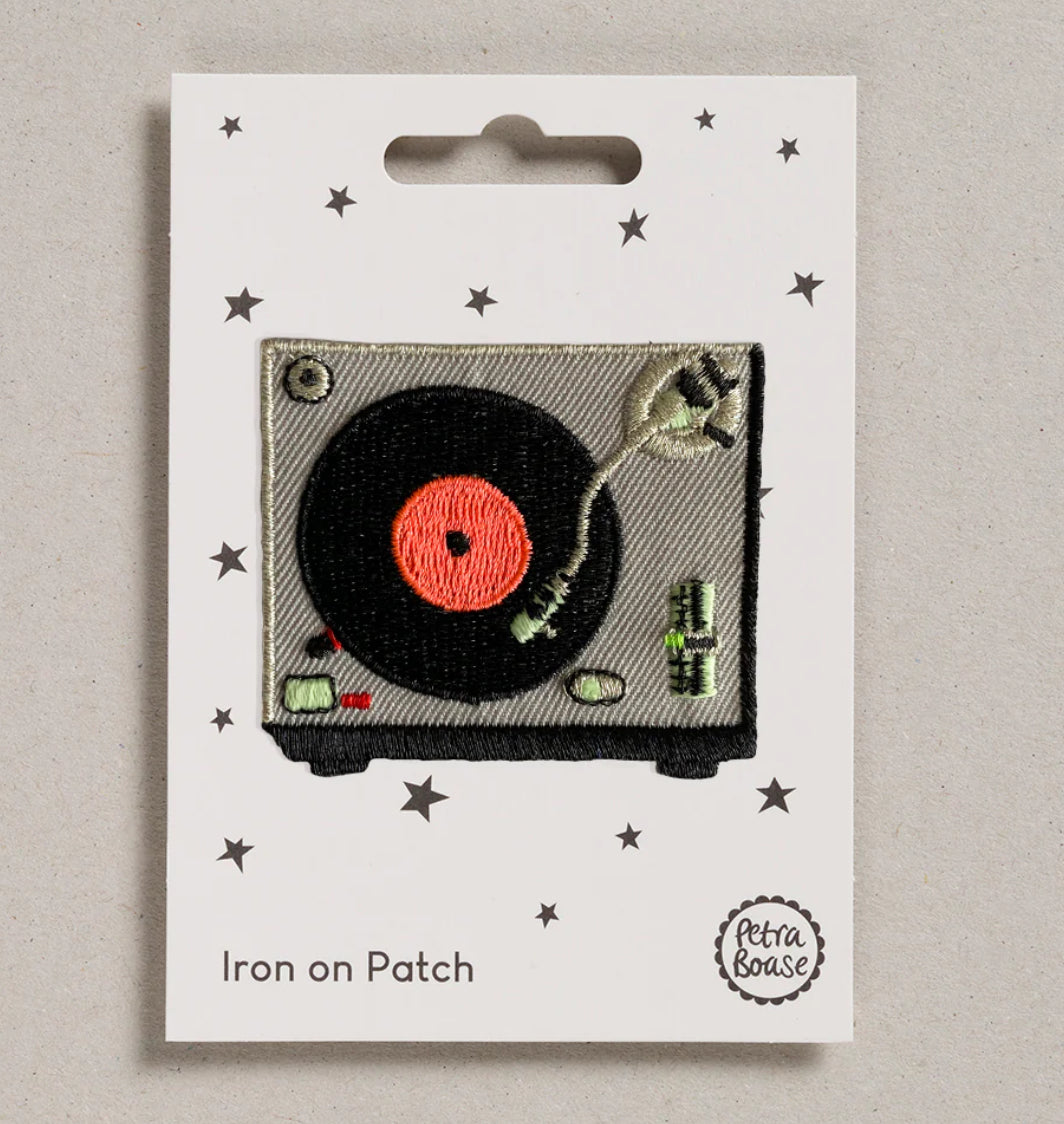 Ein reich bestickter Stoffaufnäher. Der Aufnäher hat eine aufbügelbare Rückseite, sodass er von der Karte abgenommen und direkt auf den Stoff aufgebügelt werden kann.