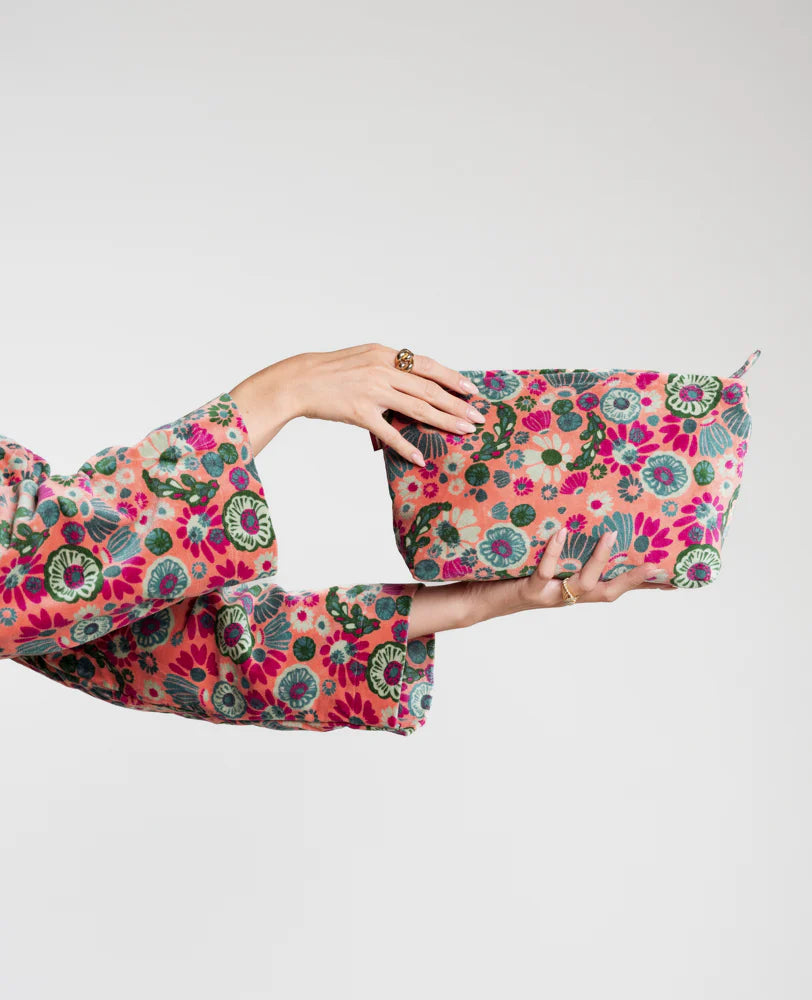 Die Kulturtasche ist ein Muss für jede Reise. Die Touristen bieten Ihnen eine grafische und farbenfrohe Samtversion an.