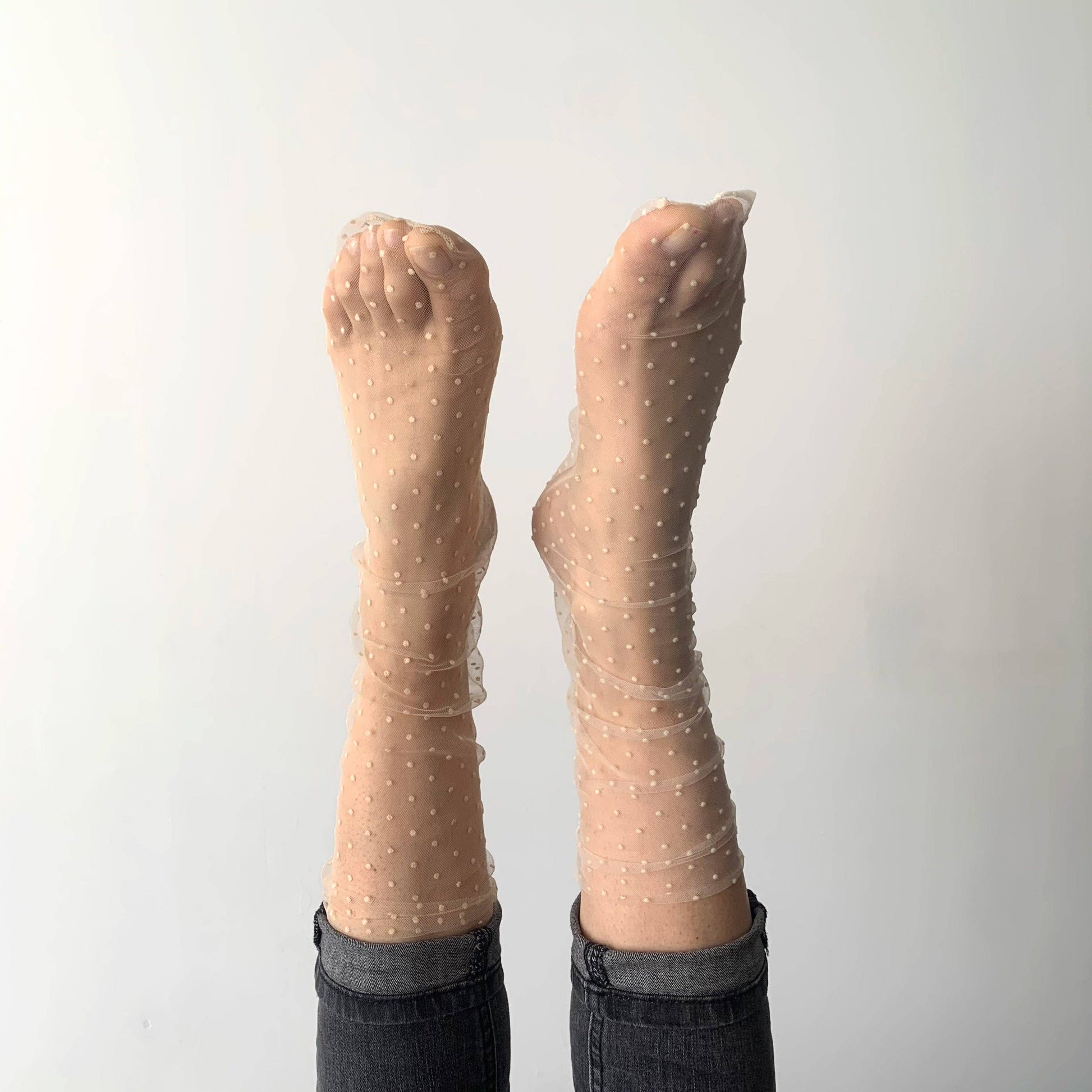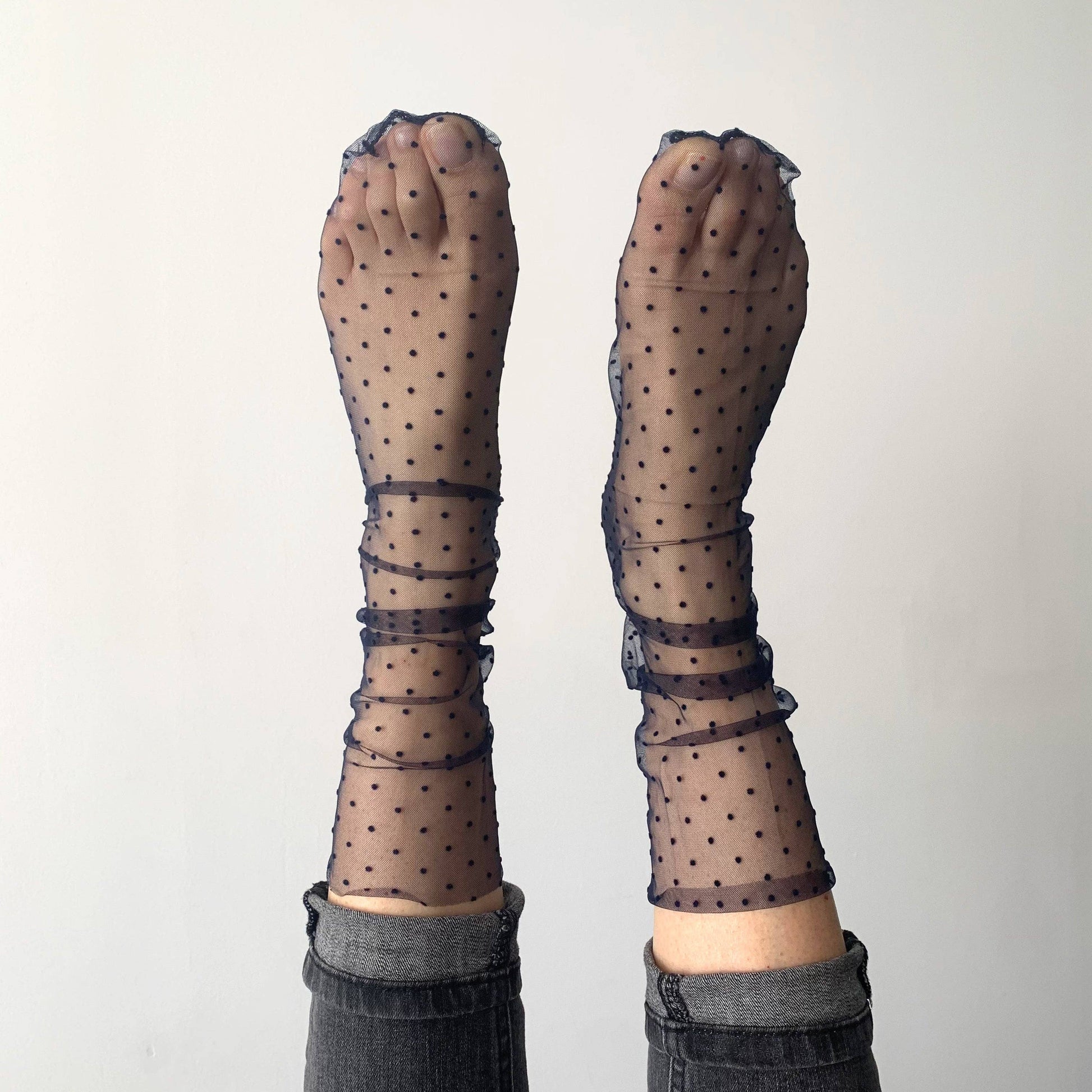 Das Tüllmodell, das Sie in Ihrem Kleiderschrank haben sollten. In verschiedenen Farben erhältlich. Modell mit einem „lockeren“ Effekt, das sich nicht wie eine herkömmliche Socke der Fußform anpasst.