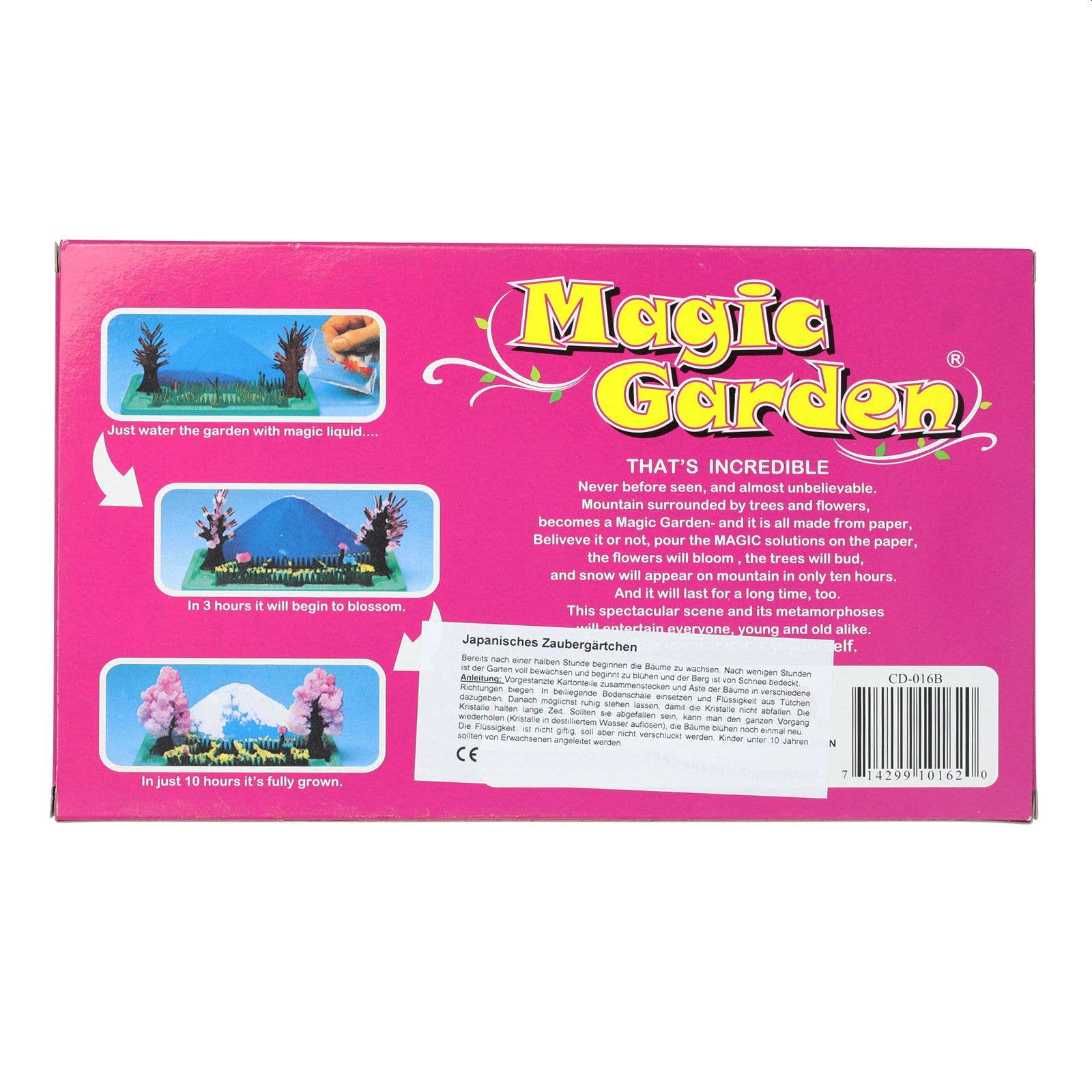 Magic Garden Der klassische Wissenschafts-Baukasten für Kinder ist da! Natürlich ist er nicht nur für Kinder. Jeder kann jetzt das Wachsen seines eigenen Garten genießen. Bereits nach einer halben Stunde beginnen die Bäume zu wachsen. Nach wenigen Stunden ist der Garten voll bewachsen und beginnt zu blühen und der Berg ist von Schnee bedeckt Lieferung mit Bergen, Bäumen und Blumen aus Papier und Kunststoff. Sobald Sie Ihren Papier Garten zusammengestellt haben, gießen Sie die Zaubergarten Lösung auf das Papier. Innerhalb weniger Stunden blühen die Blumen, die Bäume, Knospen und Schnee auf dem Berg.