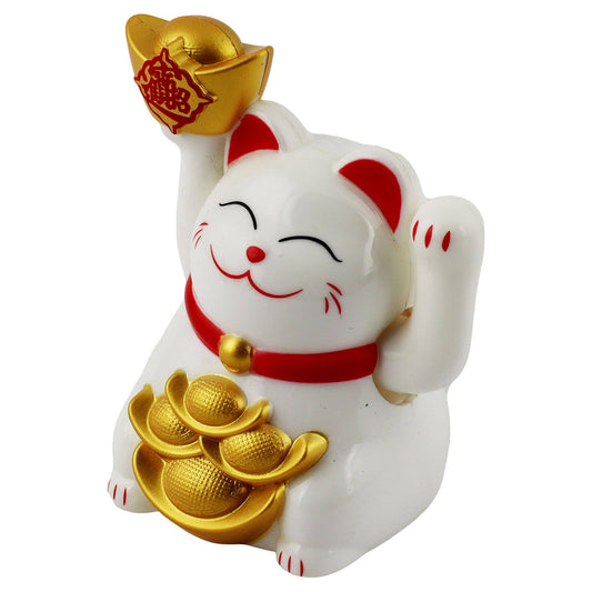 Glückskatze Mini Maneki-neko Kostbarkeit weiß Solar 5cm