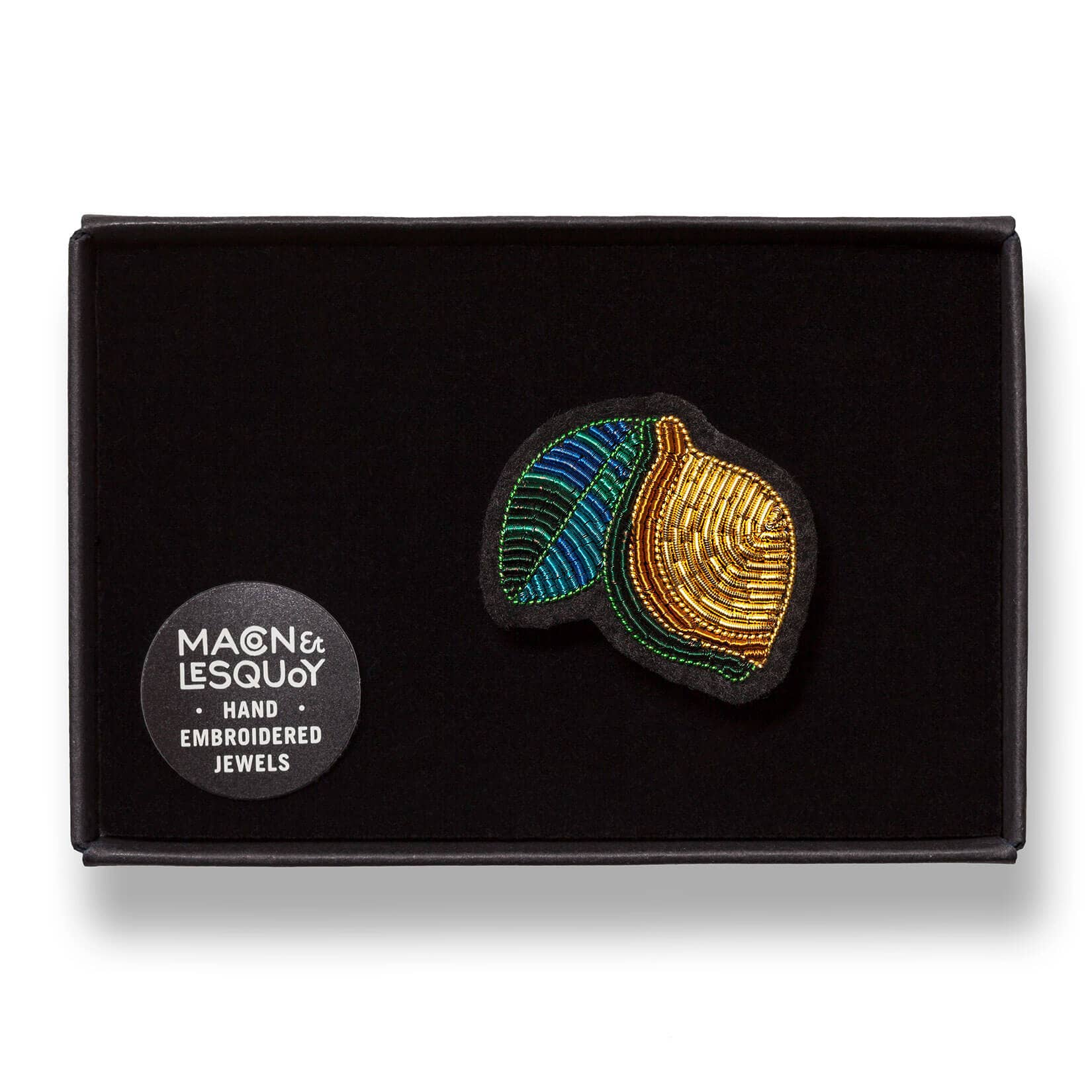 Unsere Broschen wurden in unserer Werkstatt in Pakistan sorgfältig von Hand entworfen und bestickt und sind das unverzichtbare Accessoire für Eleganz... Sogar in ihrer Karton- und Samtschachtel!