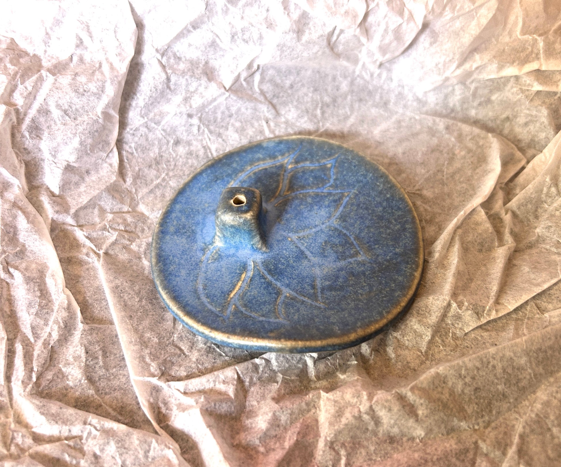Wir haben diesen Räucherstäbchenhalter in der Nähe von Lyon in Frankreich, in einem kleinen Dorfladen erstanden, in dem lokale Produzentinnen ihre Produkte verkaufen.